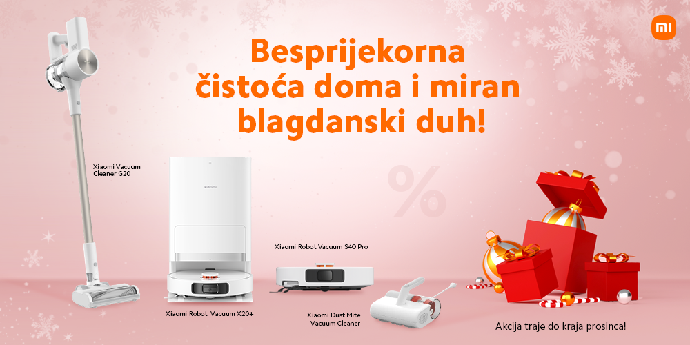 Koliko samo vremena provedemo u čišćenju doma i pripremama za najveći blagdan Božića ili koliko samo puta palimo usisavač da bismo usisali iglice od bora, ostatke hrane po podu ili papiriće i ostatke poklona. Zaboravite na nebitne stvari koje opterećuju i oduzimaju vrijeme! Xiaomi pametni uređaji od robotskih usisavača Xiaomi Robot Vacuum S40 Pro , štapnih usisavača poput Xiaomi Vacuum Cleaner G20 do usisavača grinja Xiaomi Dust Mite Vacuum Cleanera, olakšavaju cijeli taj proces! Ne samo da će se pobrinuti da sve bude čisto nego vam pruža i više slobodnog vremena!