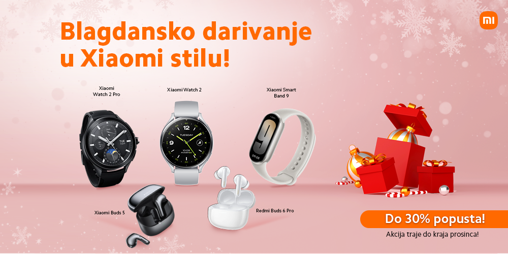 Ovog Božića daruj pametno i obradujte svoje najmilije malim znakom pažnje! Iskoristi do 30 % popusta na Xiaomi pametne satove, narukvice ili bežične slušalice!